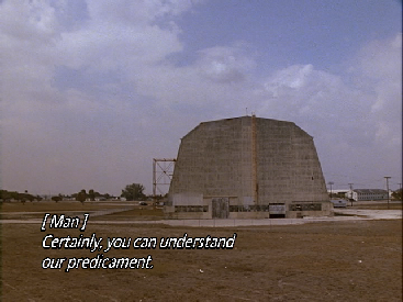 Take me to your leader. This leads us to a reused shot of the blimp hangar at Opa locka airport. Reused from Evan