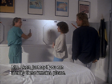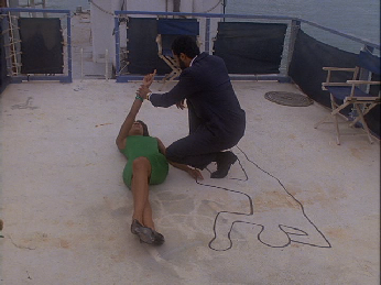 Then we return to the houseboat where they find Mrs. Akers. She is dead on the deck.