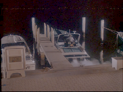 Sonny and Caitlin make a run for it and escape to the boat, tied up at the rear of the restaurant.