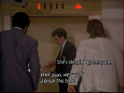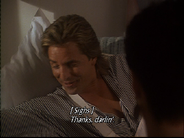 Then we see Crockett inside the OCB (set) getting a dinner date for Club Nu. Lois is calling from an unknown location.