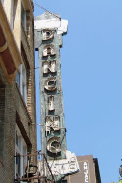 Then we see the old Taxi Dancer sign on the City Club Building in Los Angeles. 833 South Spring Street.