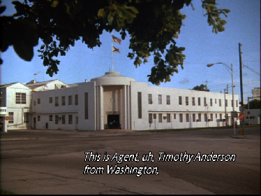 Then we see an exterior establishing shot of the OCB filmed at Gold Coast Shipping.