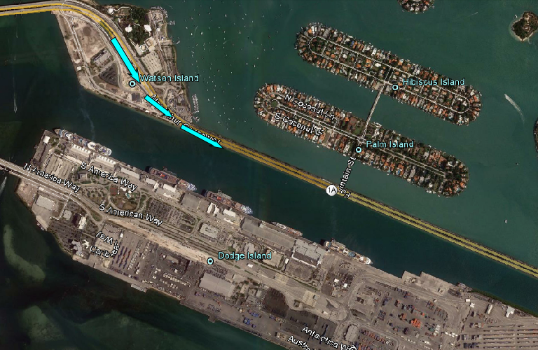 Then we see Stan and Bob headed east on Watson Island/MacArthur Causeway.