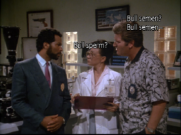 Then we see Tubbs and Stan getting a lesson in cattle. This was very likely filmed at the USDA Animal Import Center at Miami International Airport but I have not been able to confirm this yet. Location unsure.
