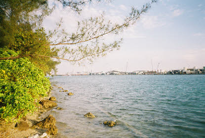 View from opposite bank of dock where thugs take off in boat.