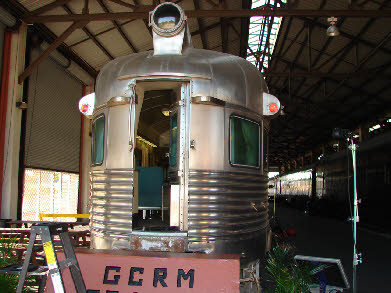 The 113 locomotive is pulling the Silver Stag. A rail car still located at the Gold Coast Railroad Museum and you can still enter and explore the rolling stock and even the 113 locomotive.