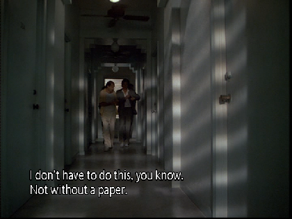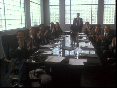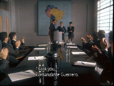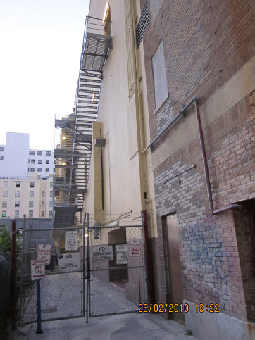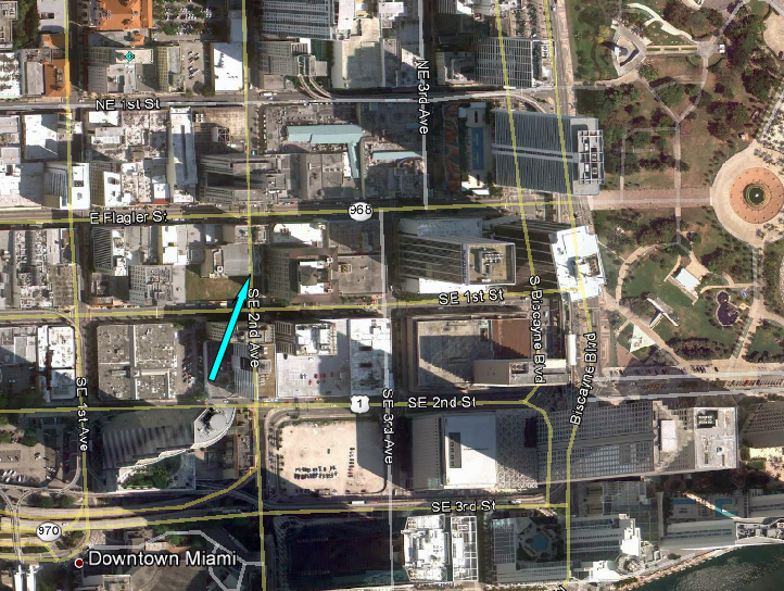 Intercut we see an exterior shot, suppose to be the view out the window. This is a shot of the SE corner of the intersection of SE 2nd Ave. and East Flagler Street, Miami.