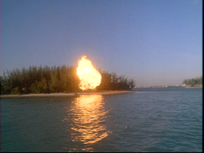 Where the boat crashes into the Island with a blatant cut between the boat riding up on shore and the explosion.