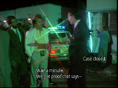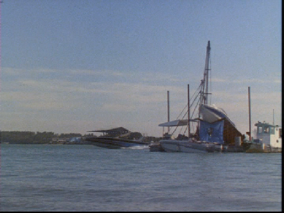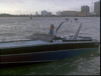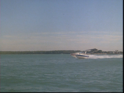 After the Samaritan gets his reward, Guerrero takes off in his boat and Crockett arrives to give chase. All filmed on location in the Miami Boat Basin.
