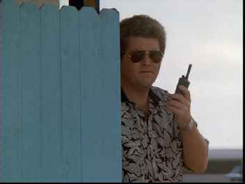 Intercut we see Agent Brody on the phone. Reportedly filmed at 455 Ocean Drive, Miami Beach but I have not confirmed this yet.