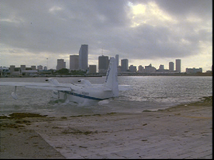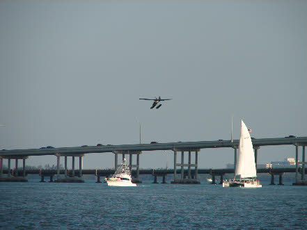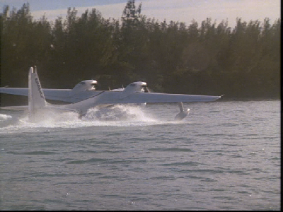 Then it cuts and we see the, out of fuel, plane headed toward a boat. This was filmed in the Miami Boat Basin looking NW. This location was first made famous in the Elvis movie, Clambake. We have since seen it in Miami Vice in episode 35, Yankee Dollar. Burn notice has also used this location. In episode 59, Brotherly Love. The movie All About The Benjamins has also used this location.