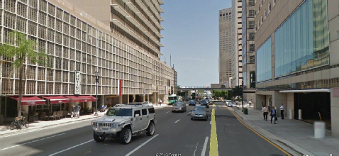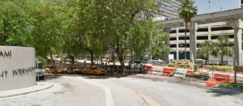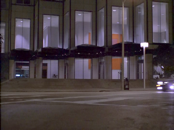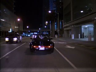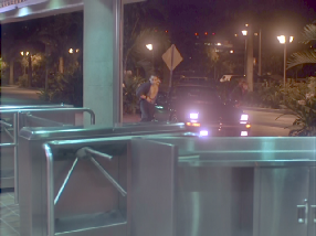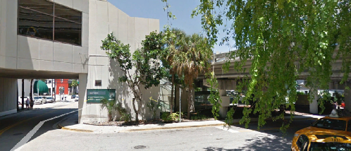 Then they come around the corner from southbound out the Bank Of America parking garage rear driveway to eastbound onto SE 4th Street before pulling into the Hyatt Regency Miami. We saw this location used in Calderone’s Return/Hit List.