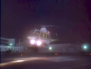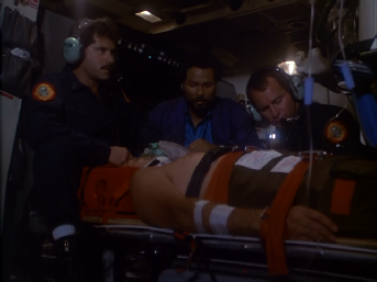 Act 1 opens with Crockett landing at a medical center. Filming location unknown.