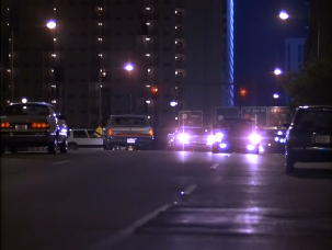 The deal goes bad and they take off. In reality they are first seen headed into a dead end parking area. There is a wall blocking access to the street.