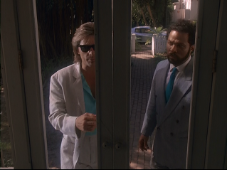 The episode starts with “Previously on Miami Vice.” Then we see footage from Forgive Us Our Debts. This was the second and final time that “Previously on Miami Vice” was used in the series. The other being in Rock and A Hard Place.