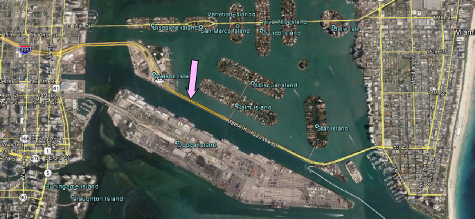 Then back on the MacArthur Causeway, again eastbound, though at first glance it looks