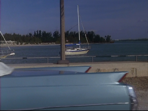 Then we see C+T in Tubb’s car. This was filmed at Crockett’s original marina, Miami Marina at Bayside. Looking east.