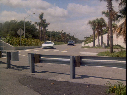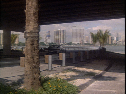 Then we see Crockett and Tubbs driving southbound on Collins Ave past the Haulover Park Marina.