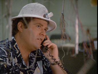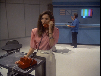 Tubbs is talking via phone to the t.v. studio. The t.v. studio was likely a set at Greenwich Studios but I have not confirmed this yet.