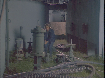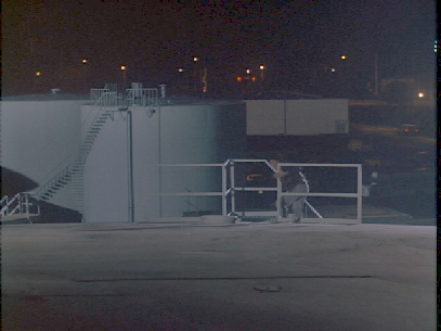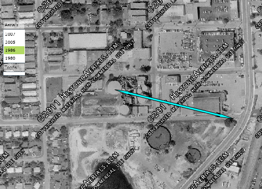 Then we see the Vice Squad raid the gun runners. This was reportedly filmed on location in North Miami Beach. NE 159th Street at NE 21st Avenue. As the stunt person climbs atop the tank we get our best view of the area. It appears the camera is shooting east toward the intersection of NE 159th Street and West Dixie Highway but this site was demolished shortly after filming and I have not been able to line up the tanks on satellite pictures exactly as they appear on screen but it generally appears correct.