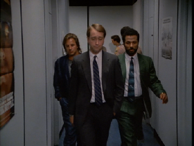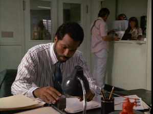 Then Crockett returns to work inside the OCB where he officially reports being okay. Filmed on set at the studio.