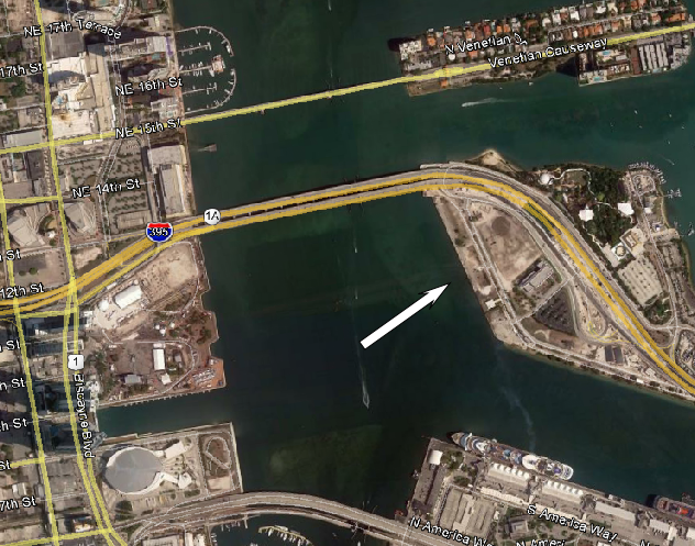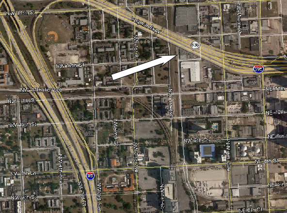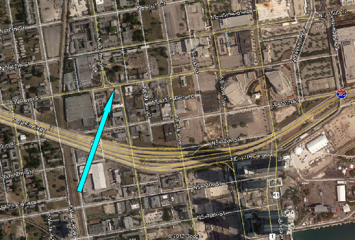 Then passing NW 10th Street still southbound on NW 1st Ave.