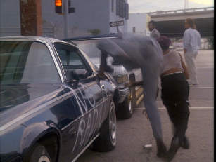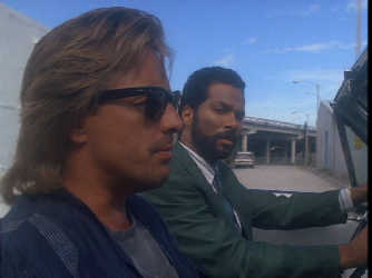 Next we see Crockett and Tubbs watch a couple thugs break into a vehicle, vandalize it, and steal the radio. They allow the thugs to walk off with the loot for some unexplained reason. This was filmed outside 1050 North Miami Avenue.