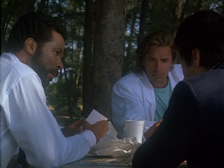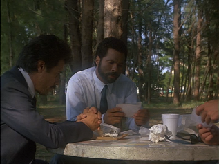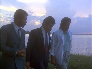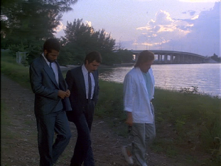 Then we see a beautifully filmed meeting between Crockett, Tubbs and Castillo. Filmed on location adjacent to Mt. Sinai Hospital on Miami Beach. Sadly this park no longer exist. It has been replaced with a parking lot.