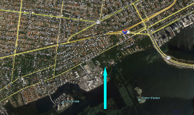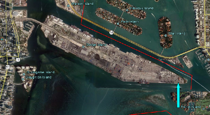Then we see Tubbs arrive on the north side of Dodge Island/Port Of Miami. The MacArthur Causeway is seen in the background.