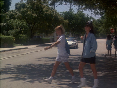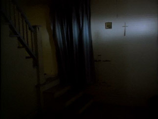 The interior of the home is clearly low dollar with uncarpeted stairs and floors. However the footage of the killer walking, is clearly taken from somewhere else (likely stock footage) and not filmed at the same locale. Even the staircase design is different, straight without a landing.
